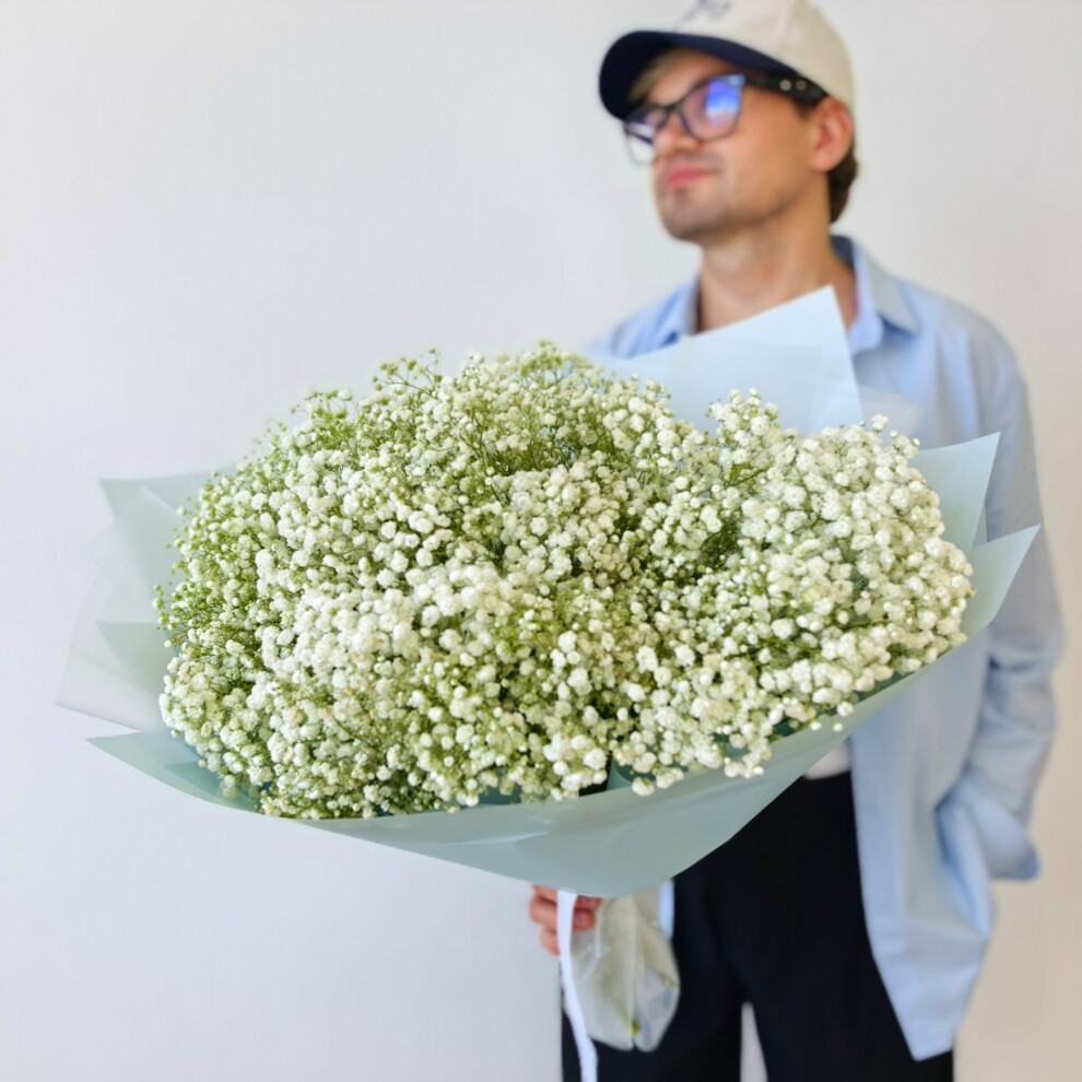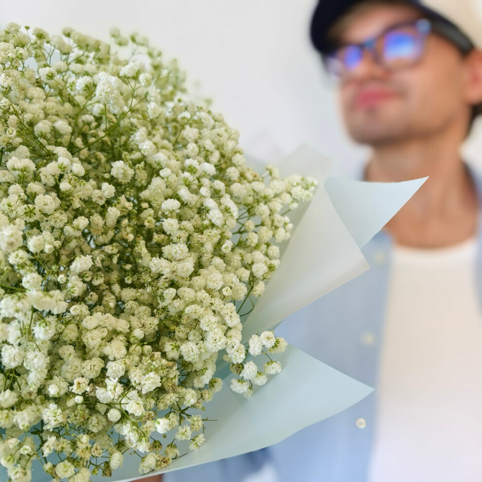 Этот букет из белых гипсофил — воплощение нежности и утончённости! Нежные белоснежные цветочки создают лёгкую и воздушную композицию, которая словно наполнена светом и чистотой.