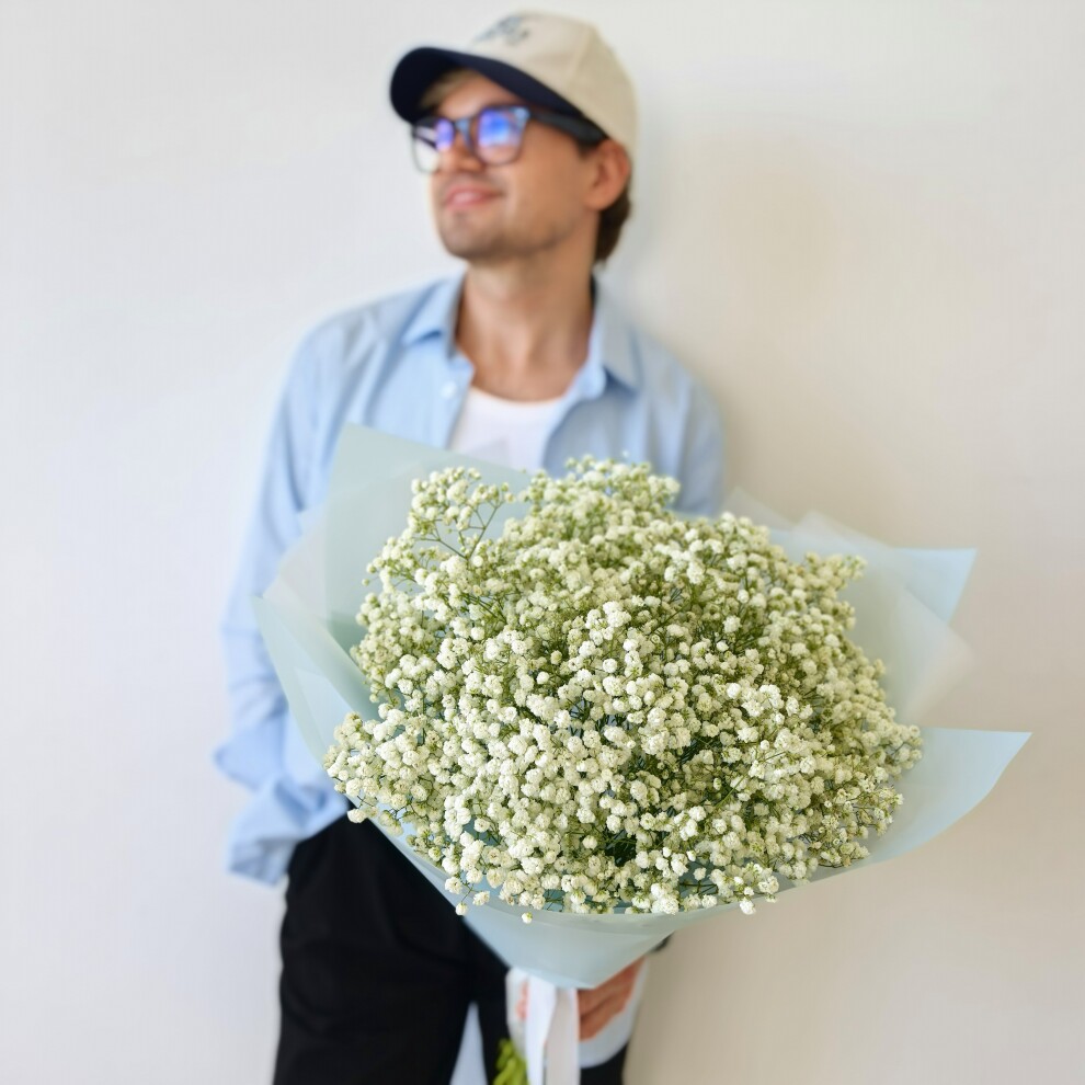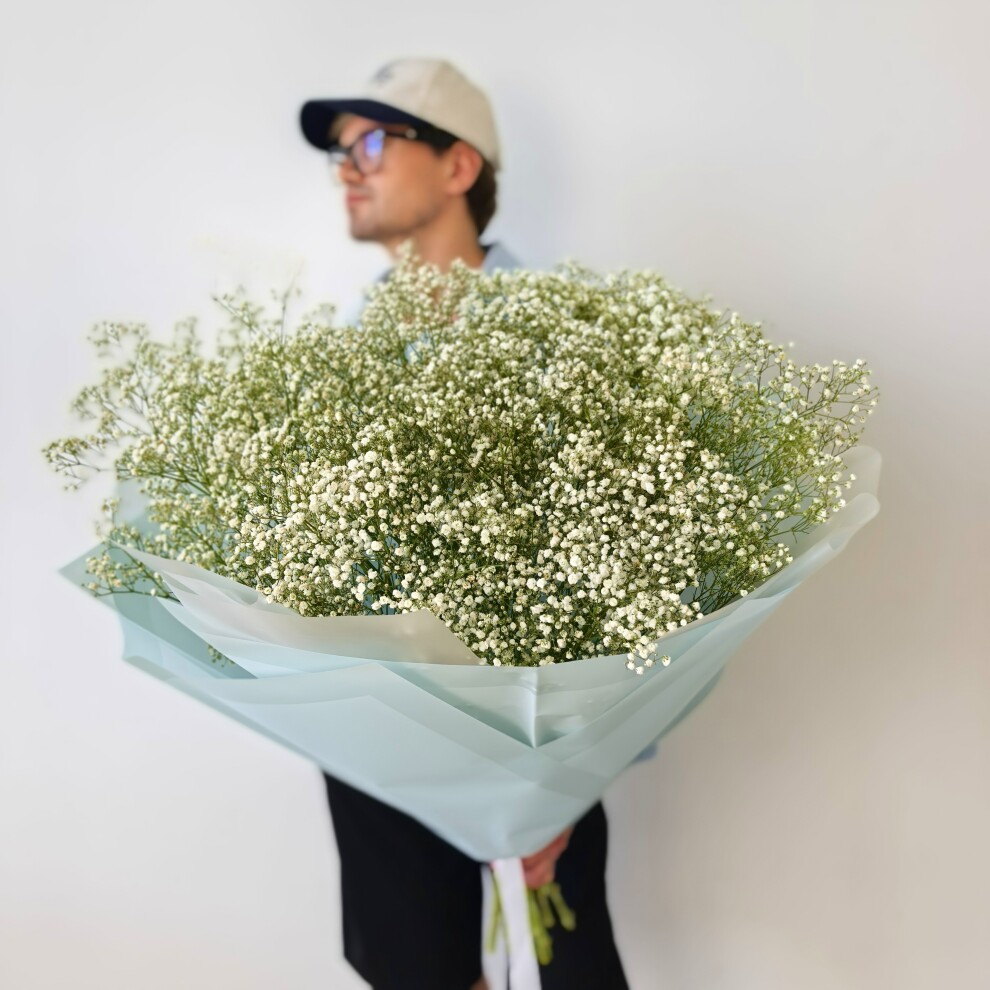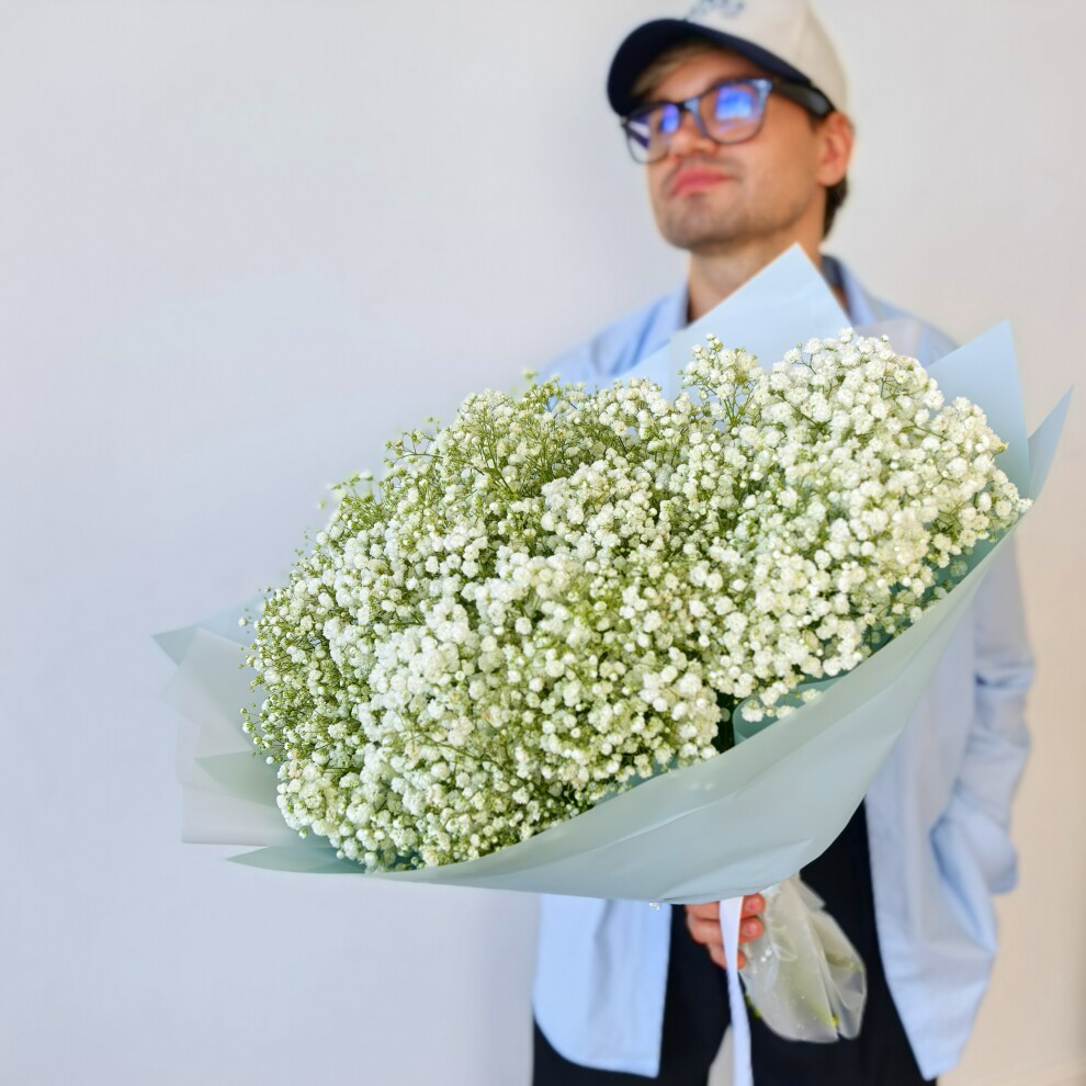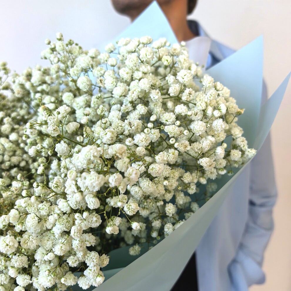 Гипсофилы символизируют искренность и невинность, а их изысканная упаковка подчёркивает природную красоту цветов. Такой букет идеально подойдёт для романтического подарка, поздравления или просто для того, чтобы порадовать близкого человека.