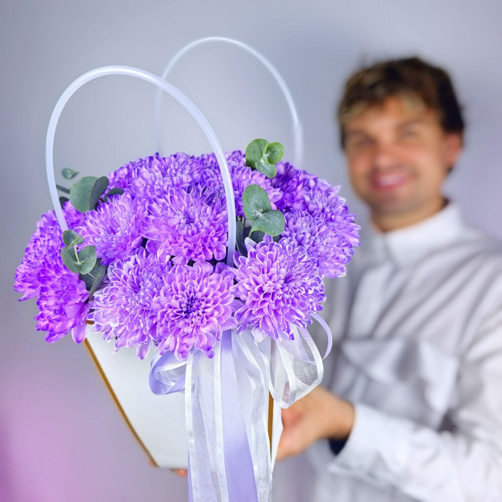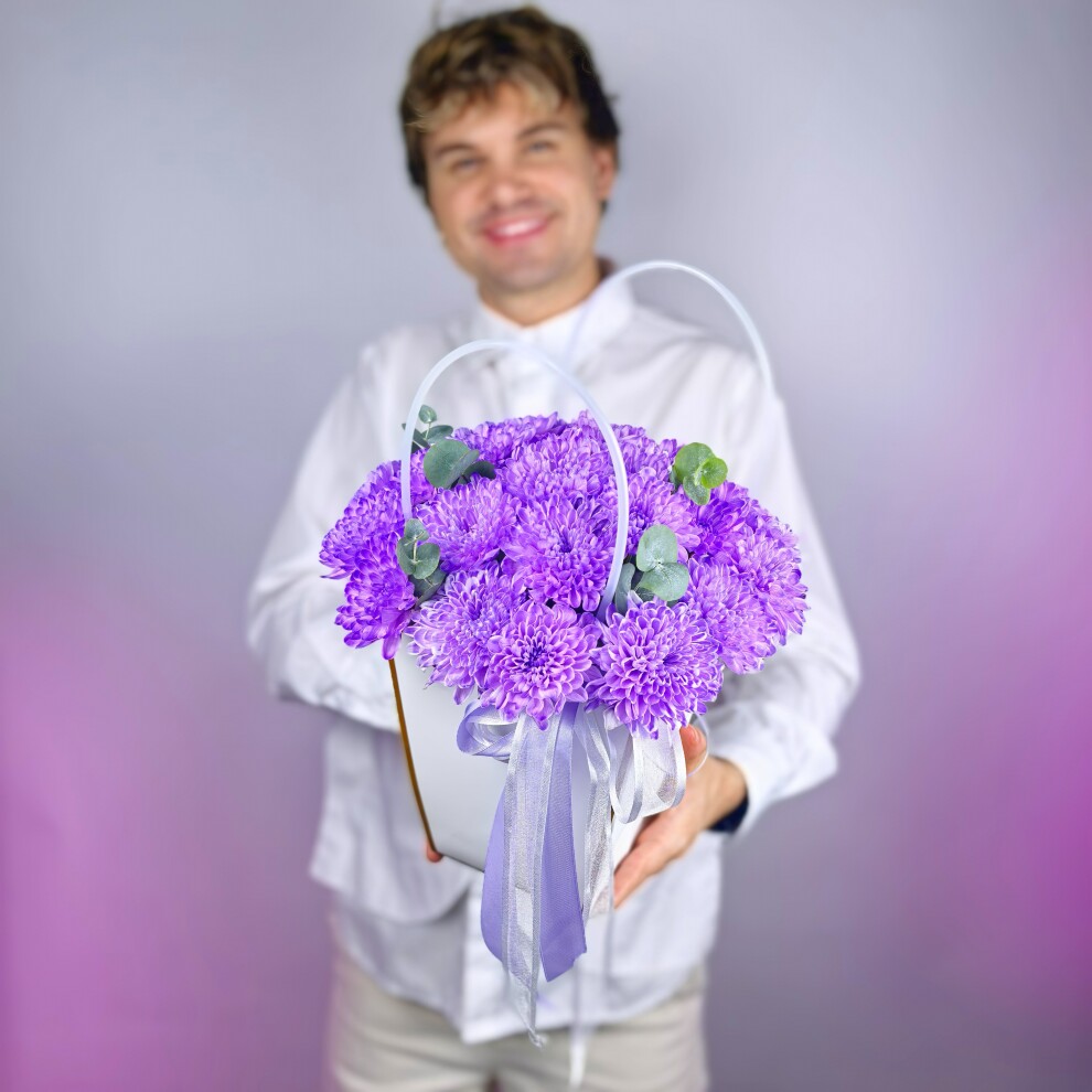 Эта сумочка с фиолетовыми хризантемами — воплощение нежности и утончённости.