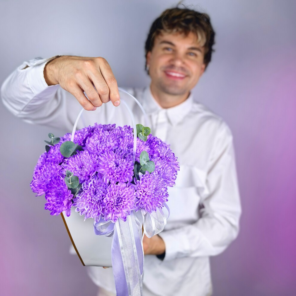 Белая сумочка с фиолетовой Хризантемой