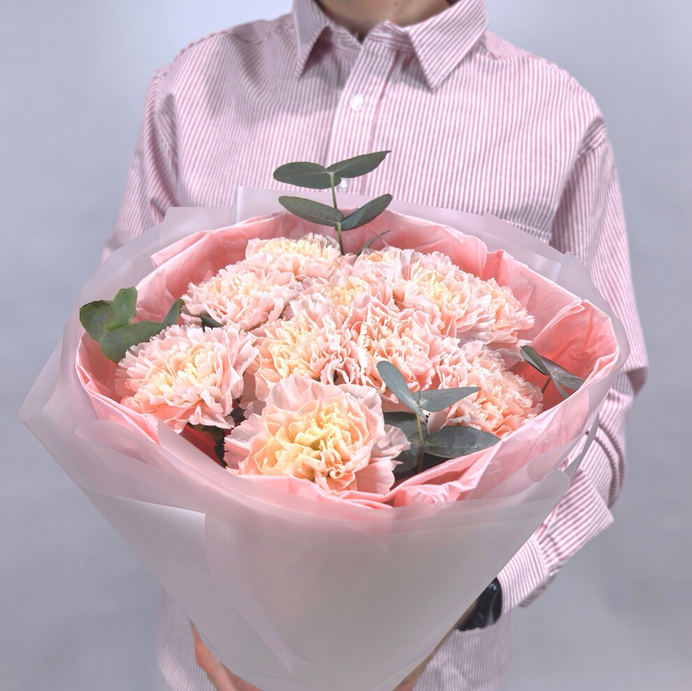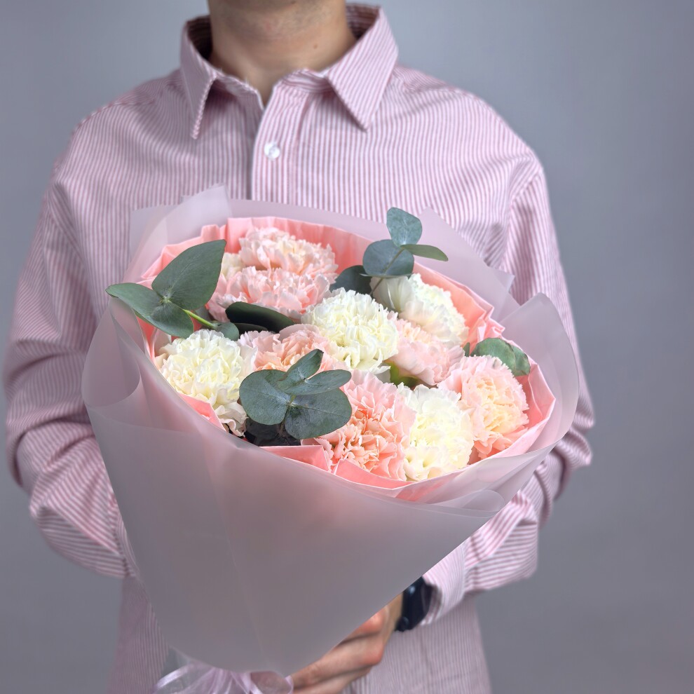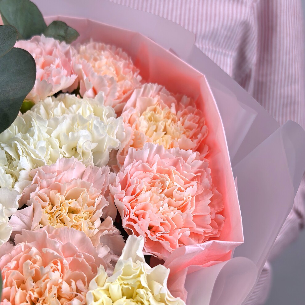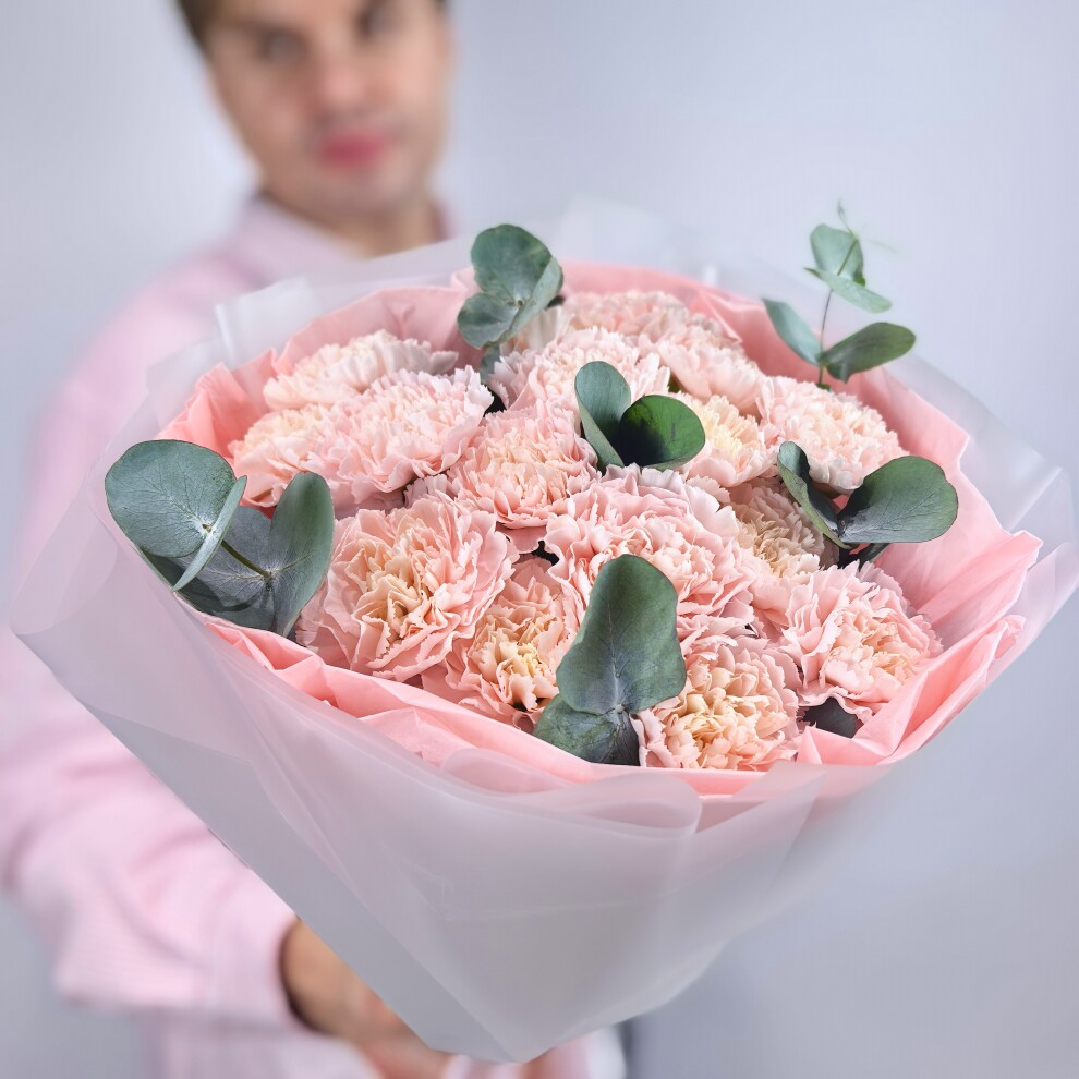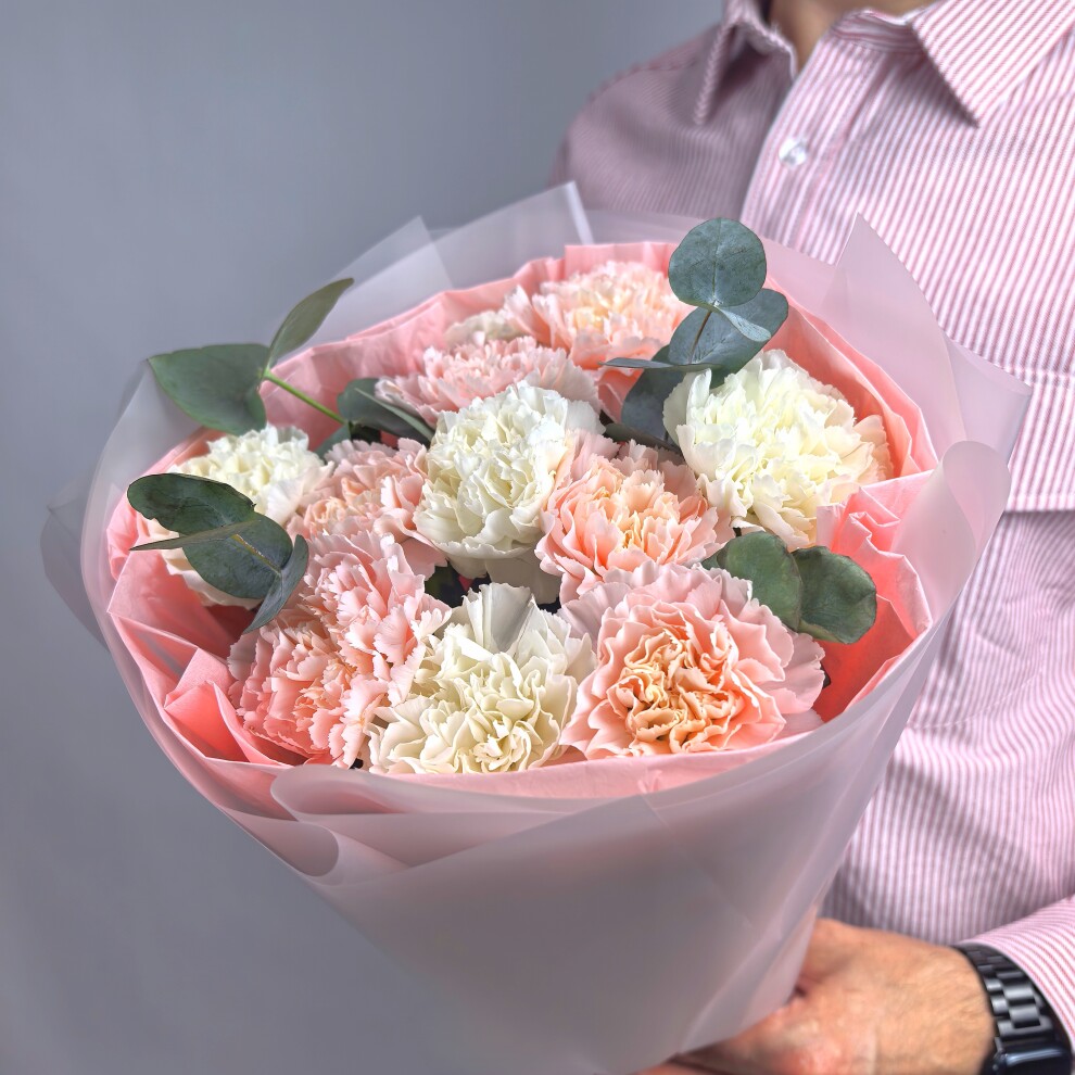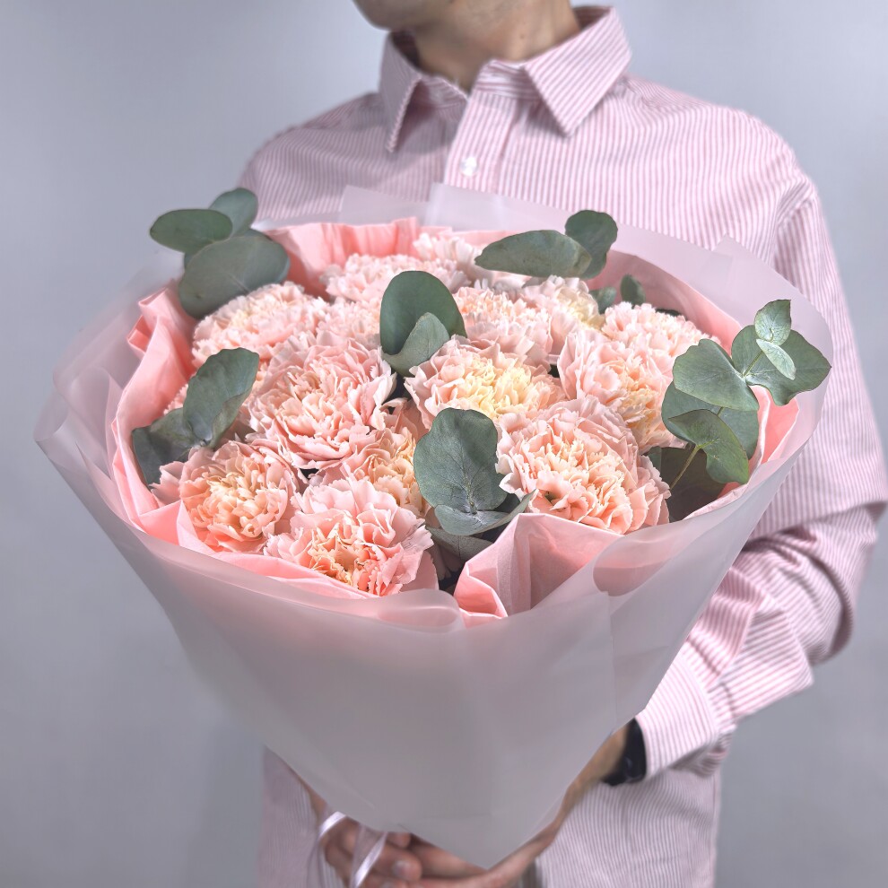Этот изысканный букет из диантусов — воплощение нежности и утончённости.