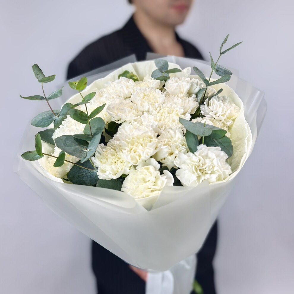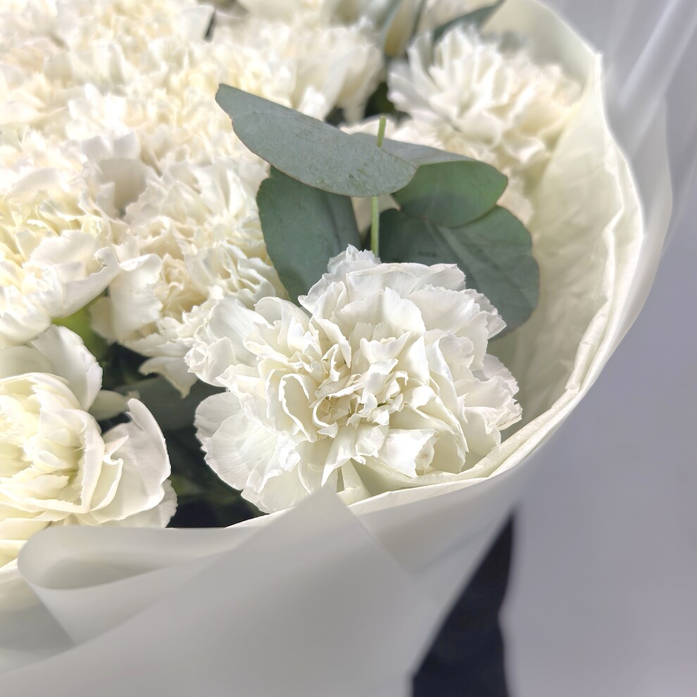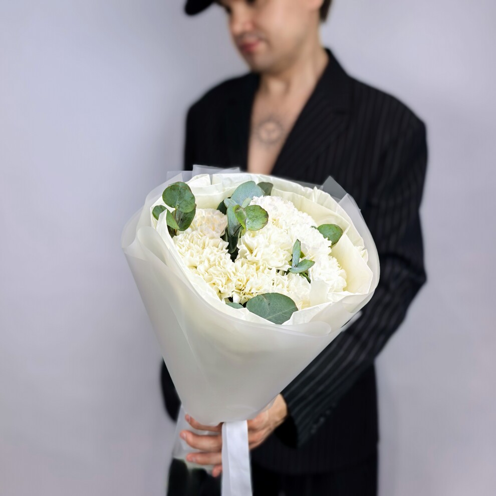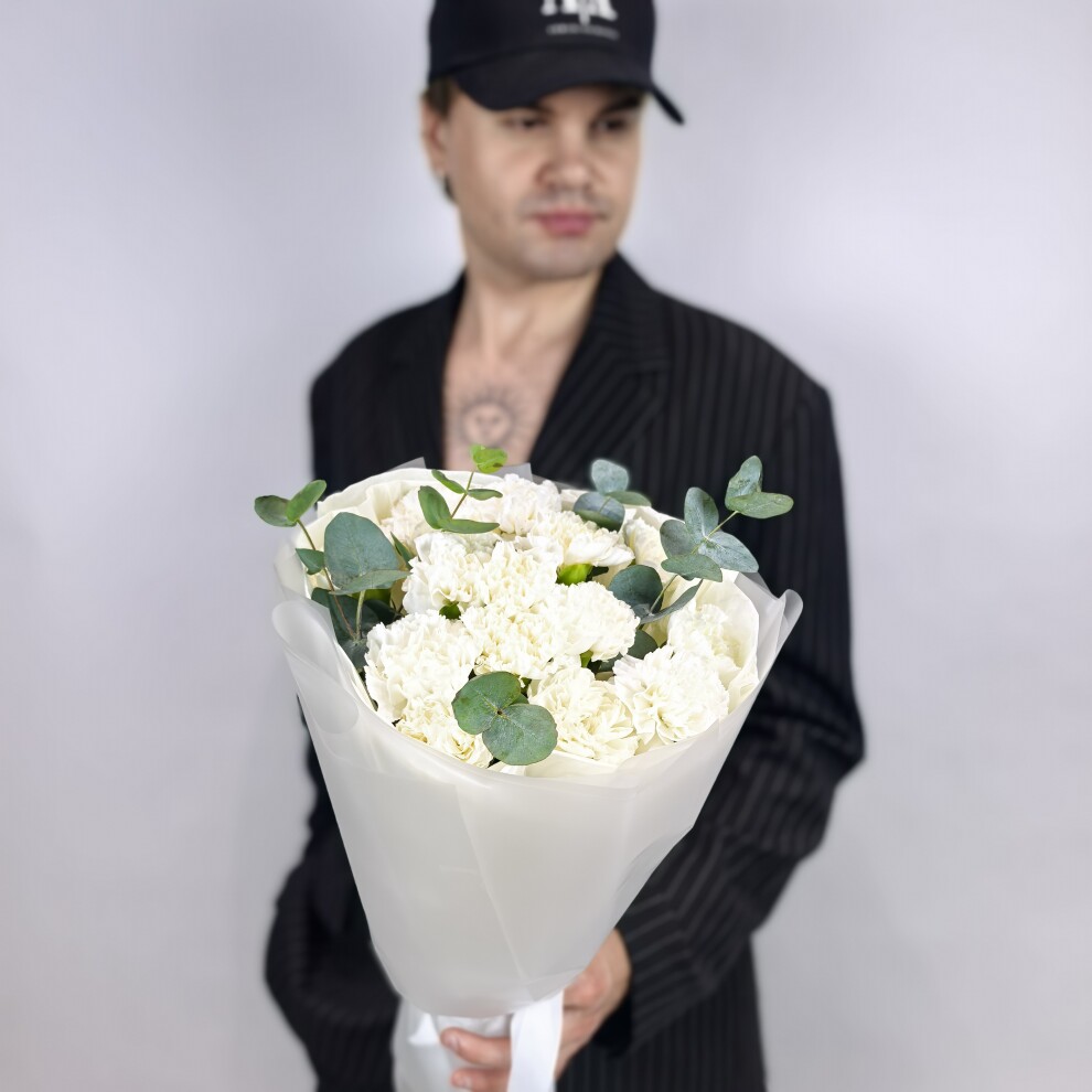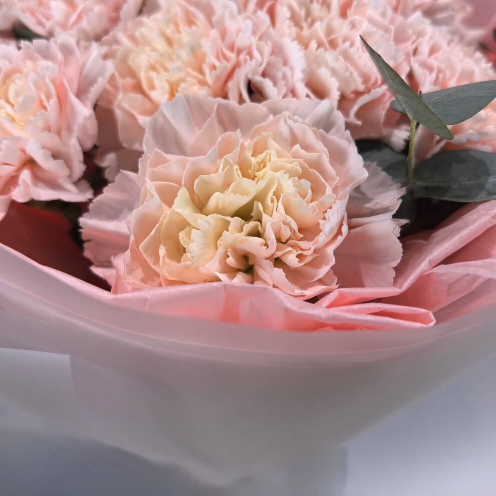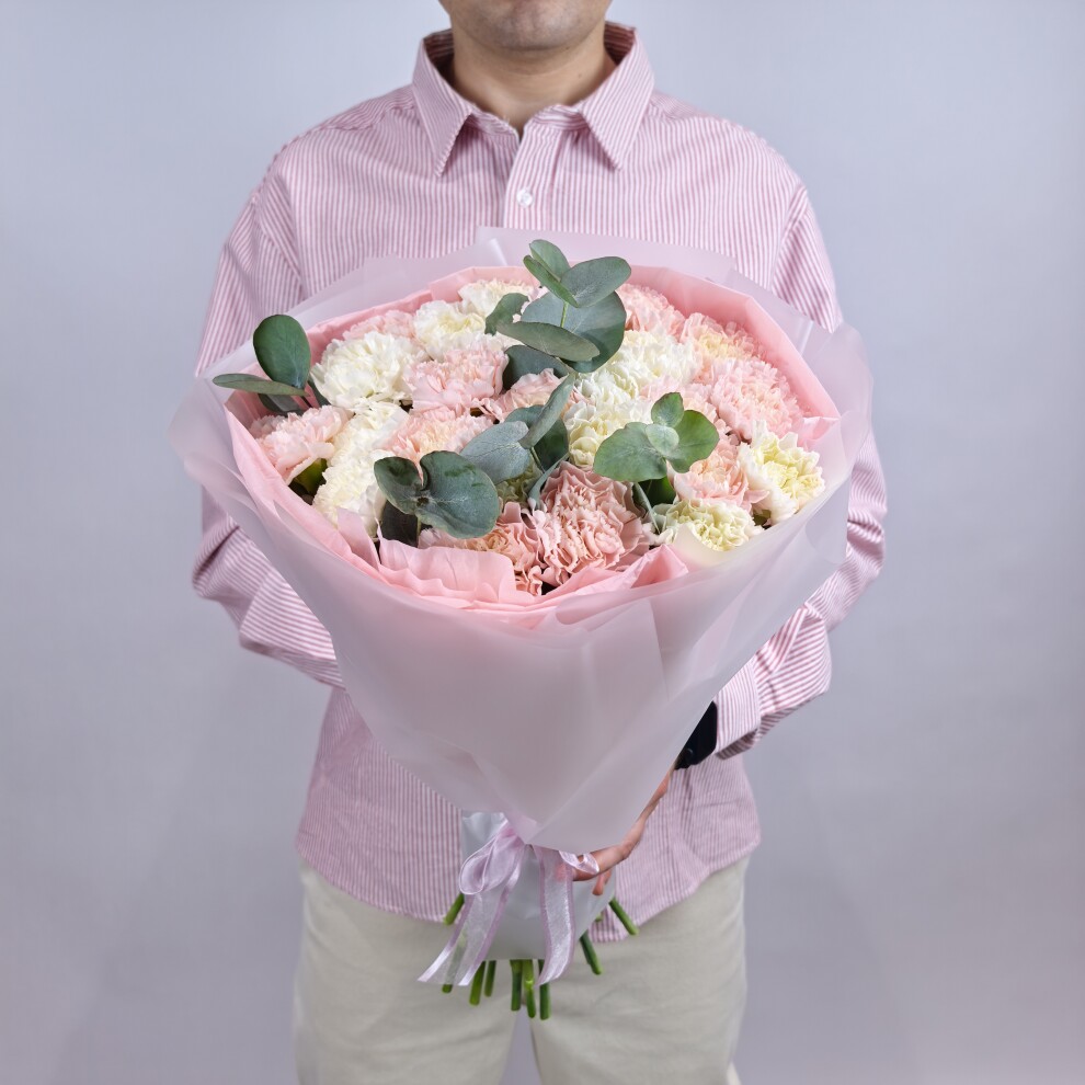 Этот изысканный букет из диантусов — воплощение нежности и утончённости.