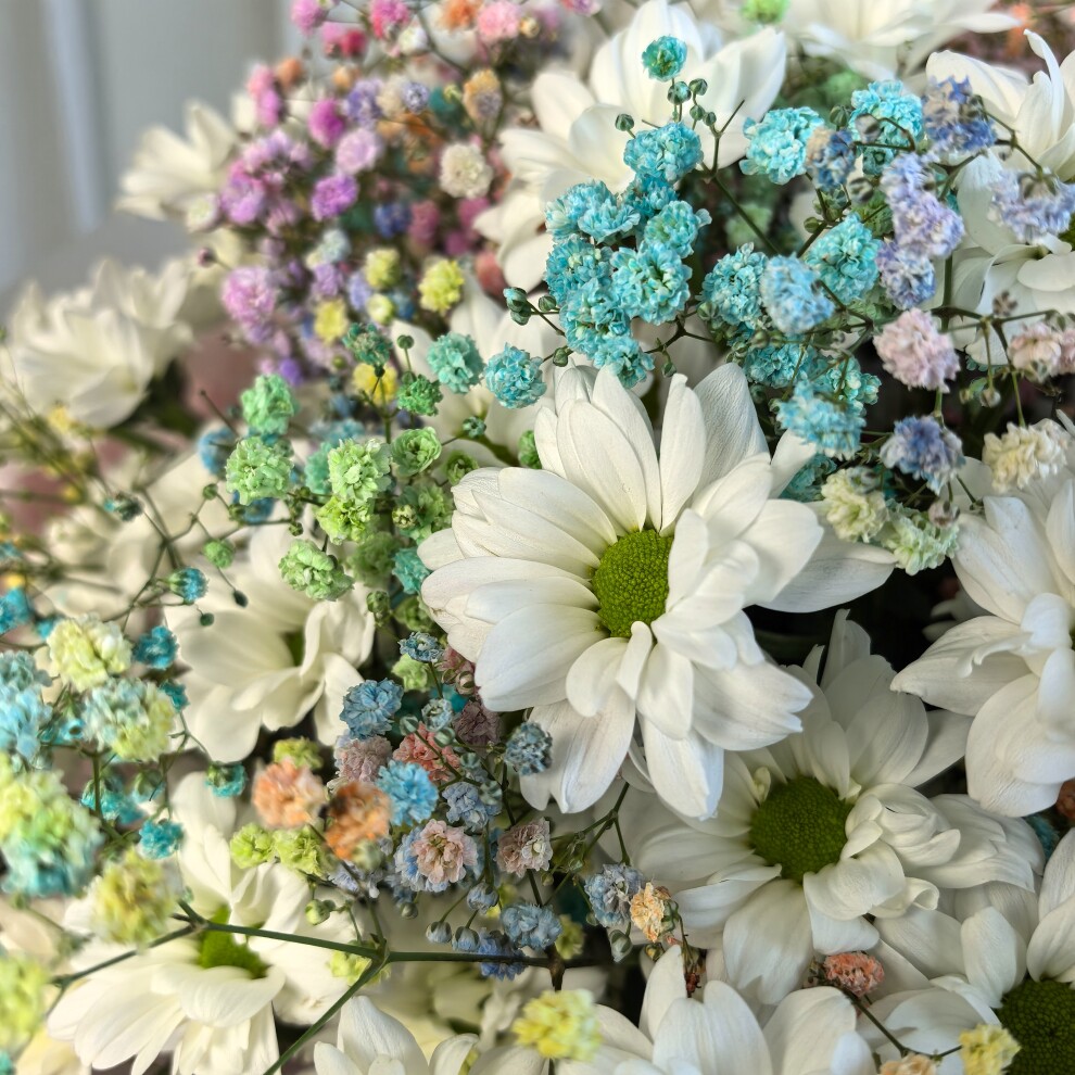 Букет из Хризантем и цветной Гипсофилы