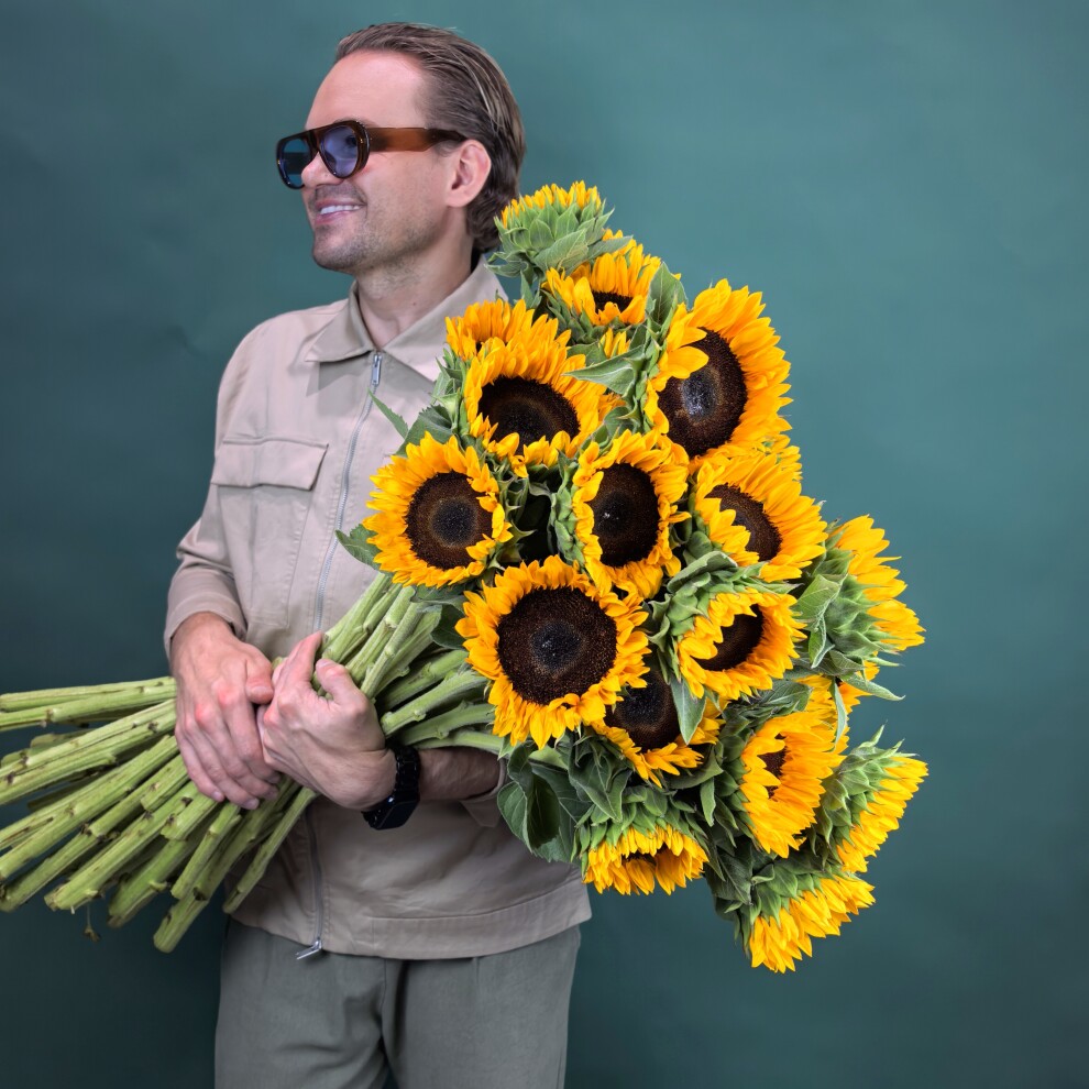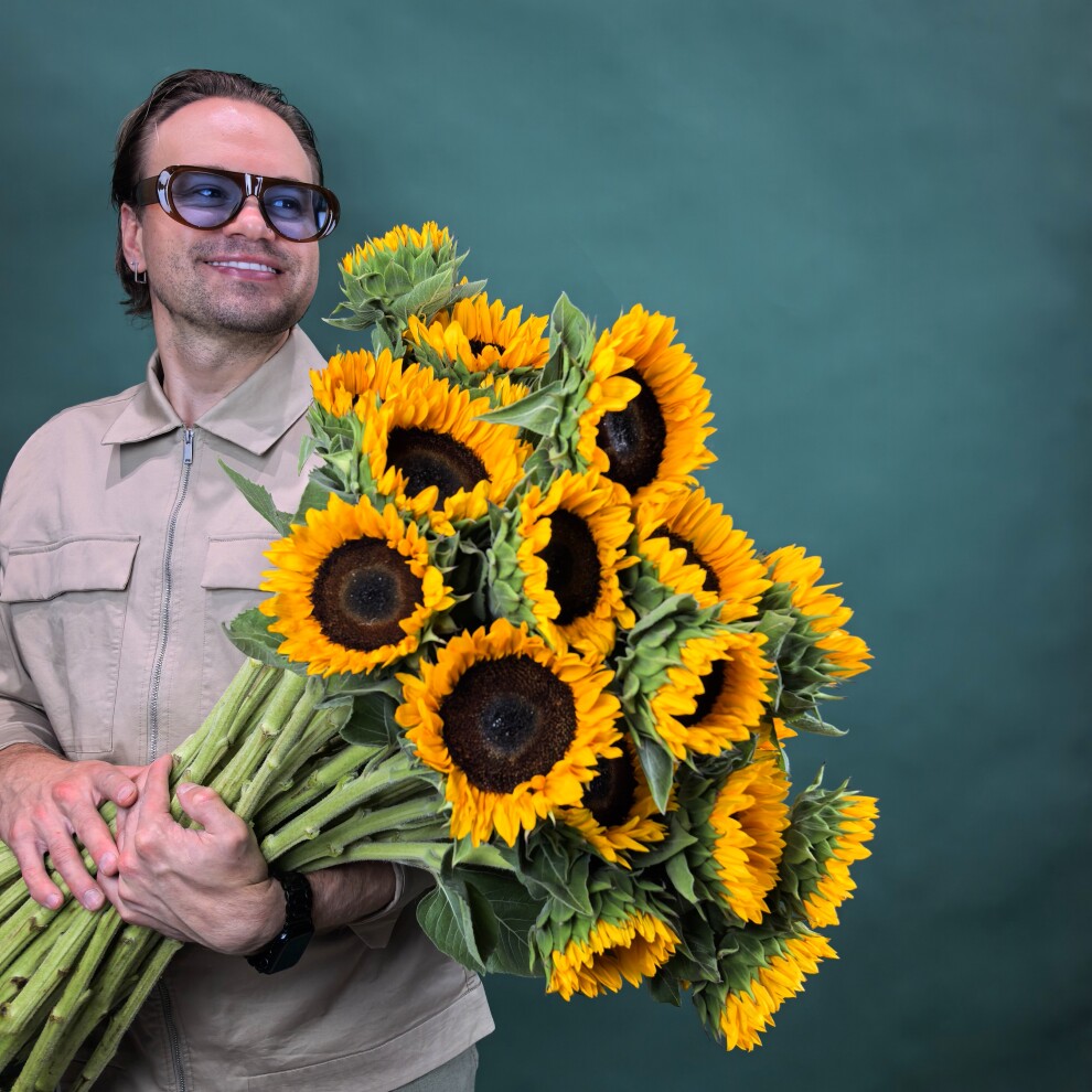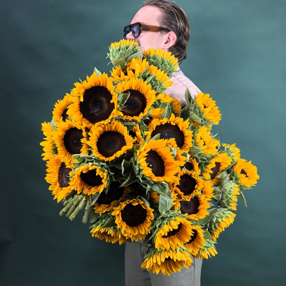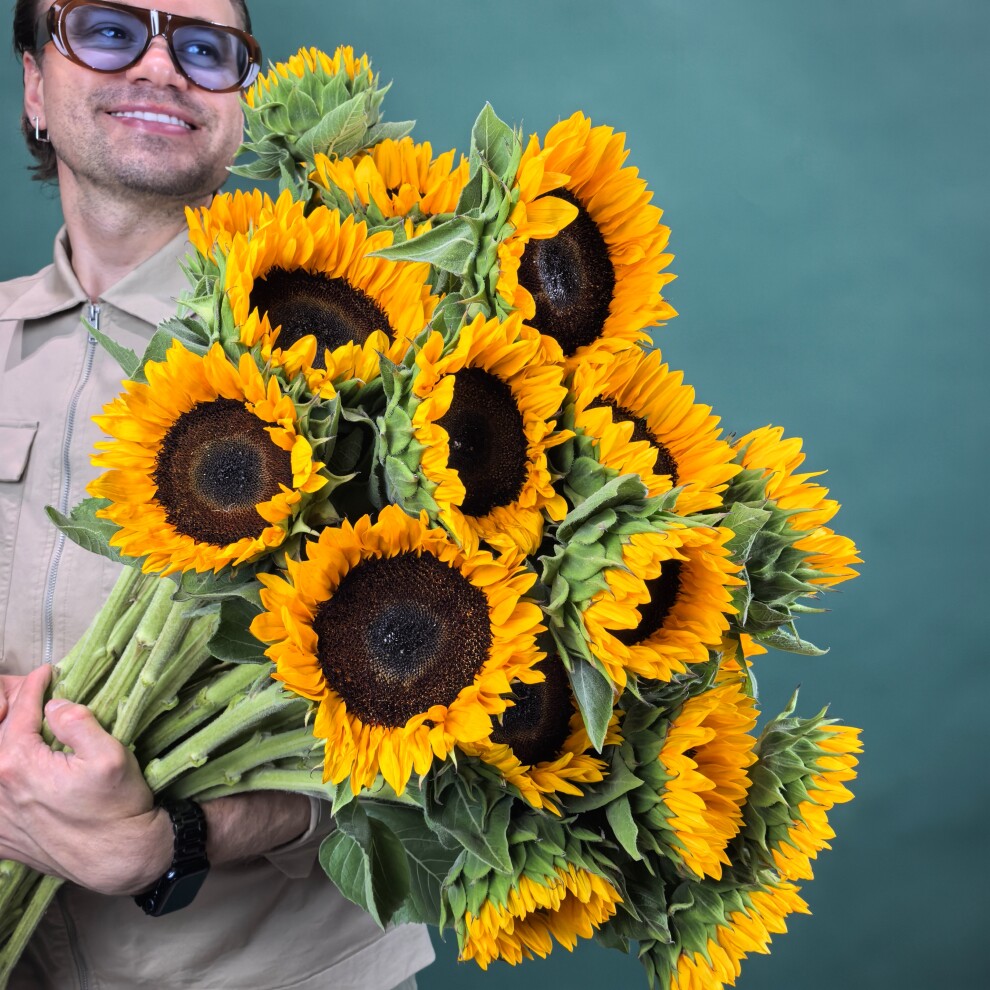 Этот букет из подсолнухов — воплощение солнечного настроения и мужской энергии!
