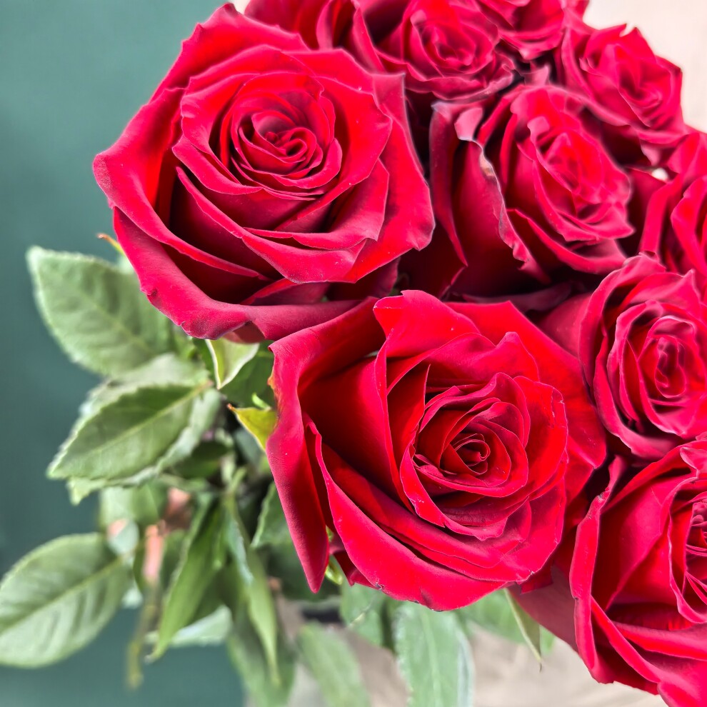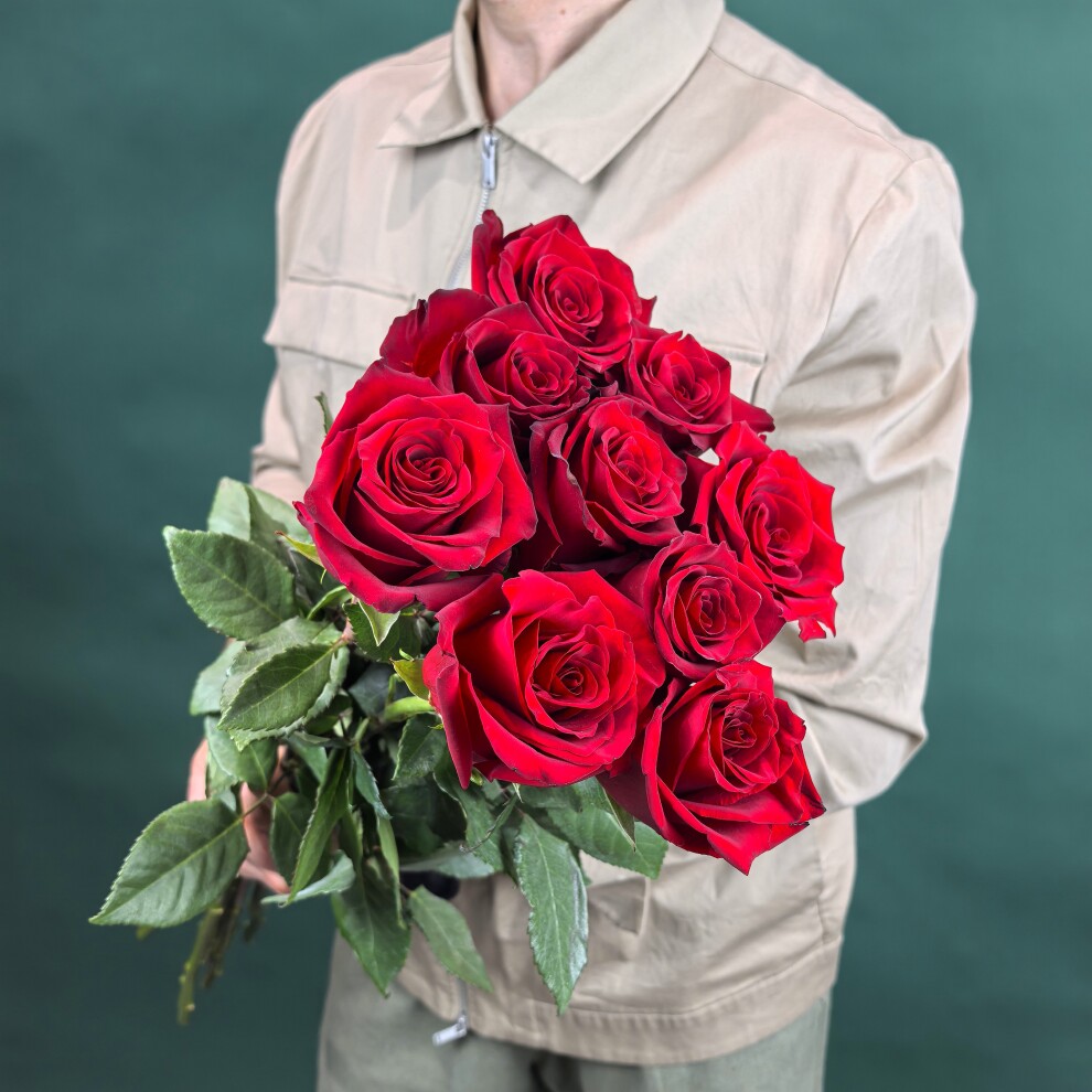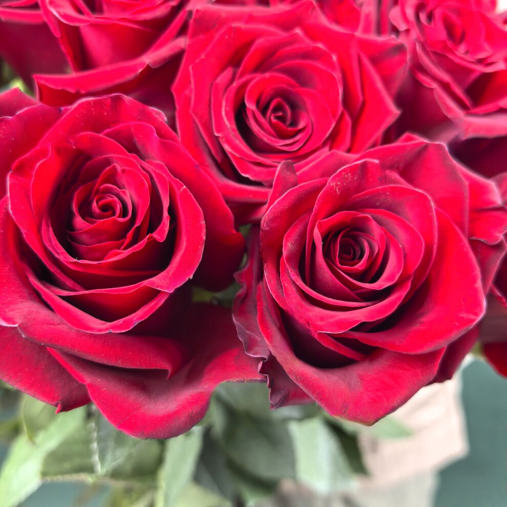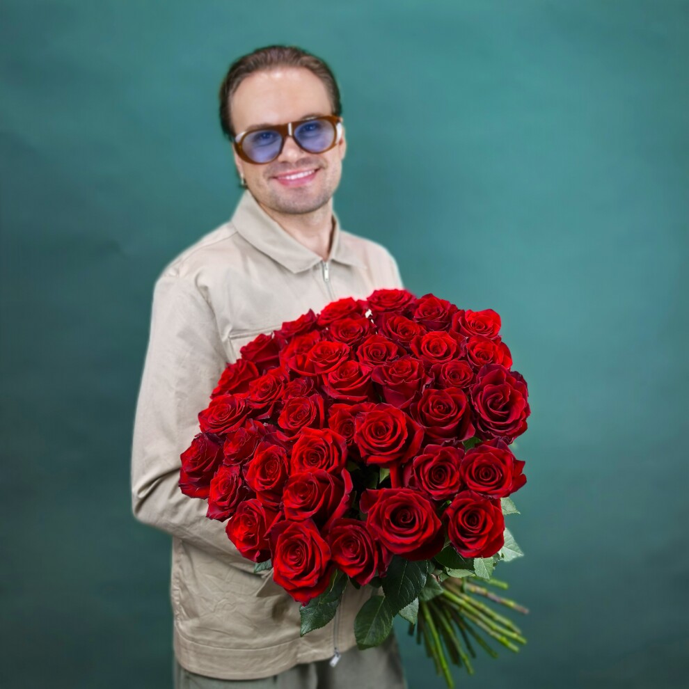Этот букет — воплощение роскоши и страсти. Насыщенный красный цвет и бархатистые лепестки создают ощущение тепла и любви.