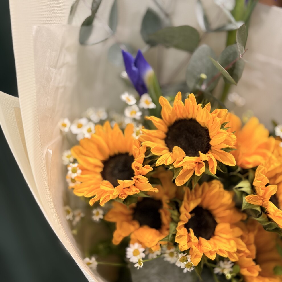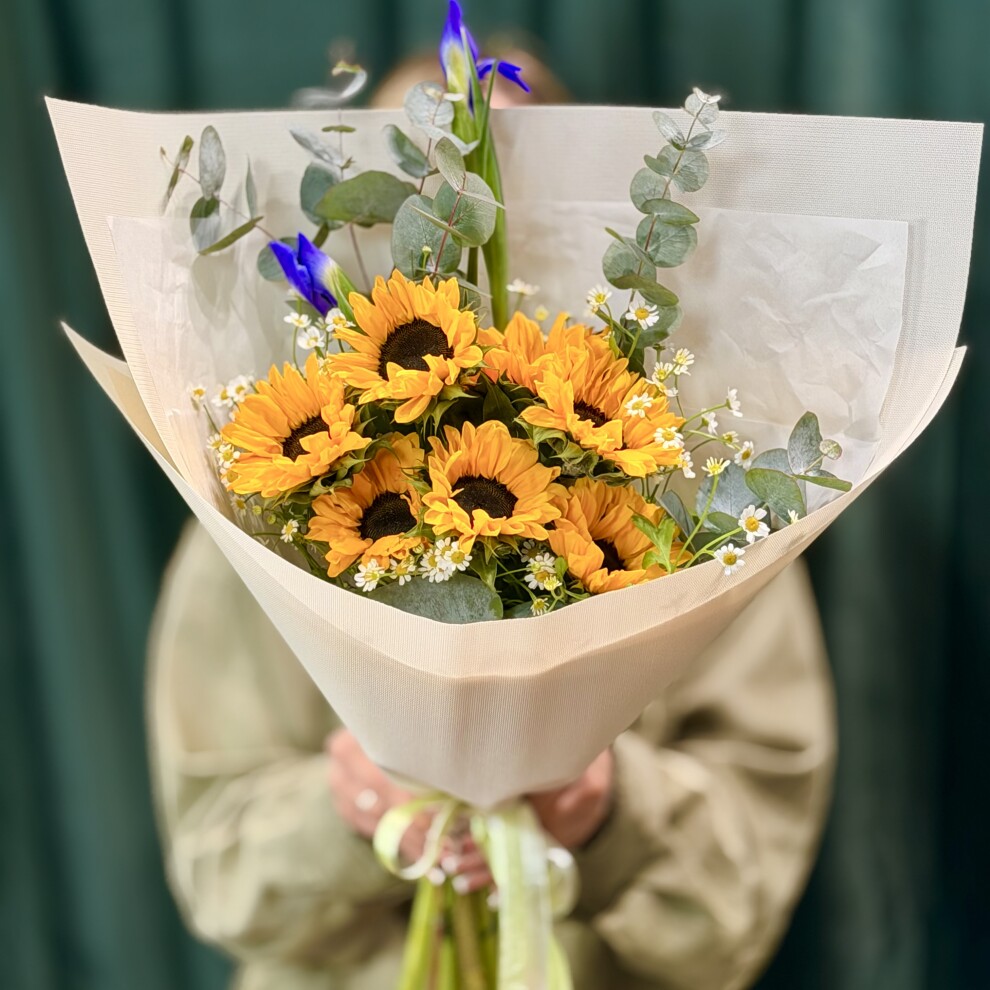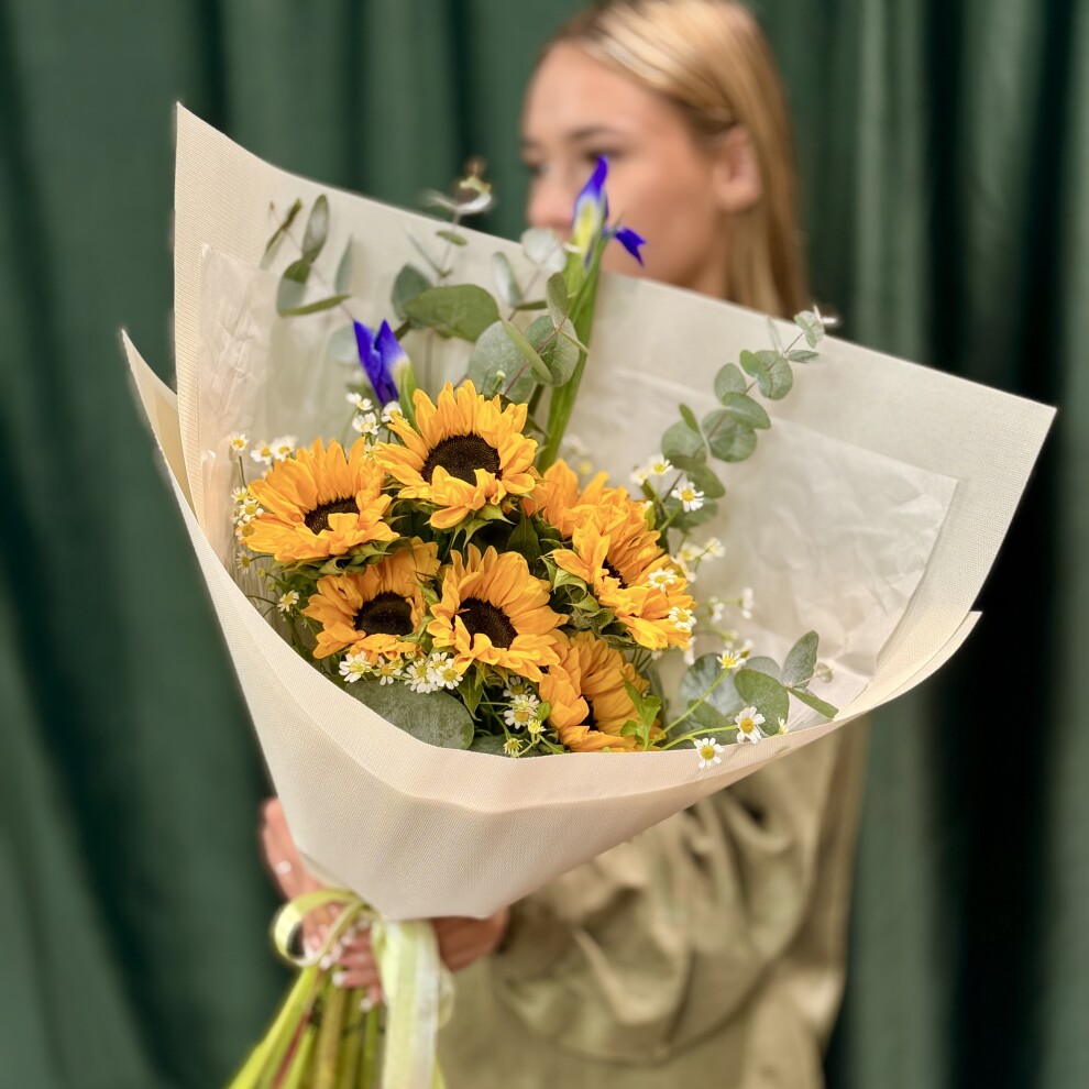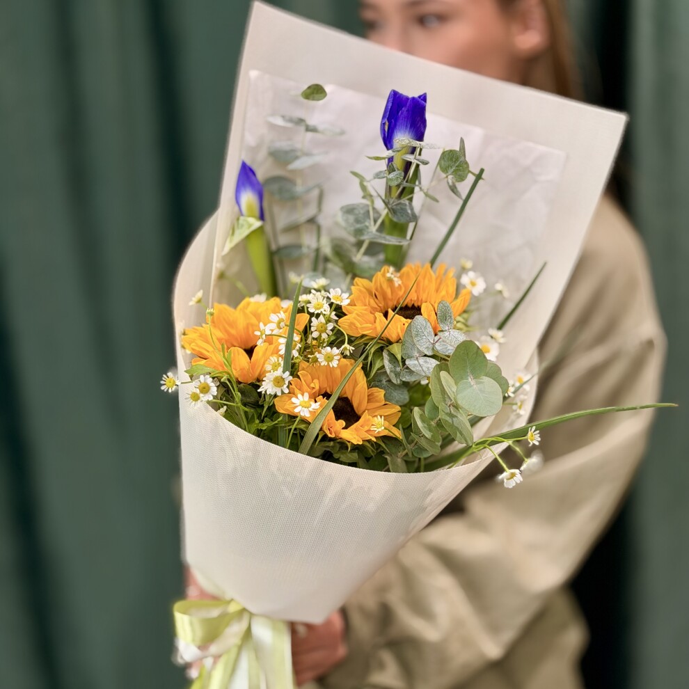 Букет с подсолнухами и ирисами
