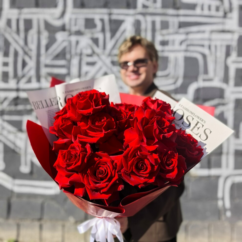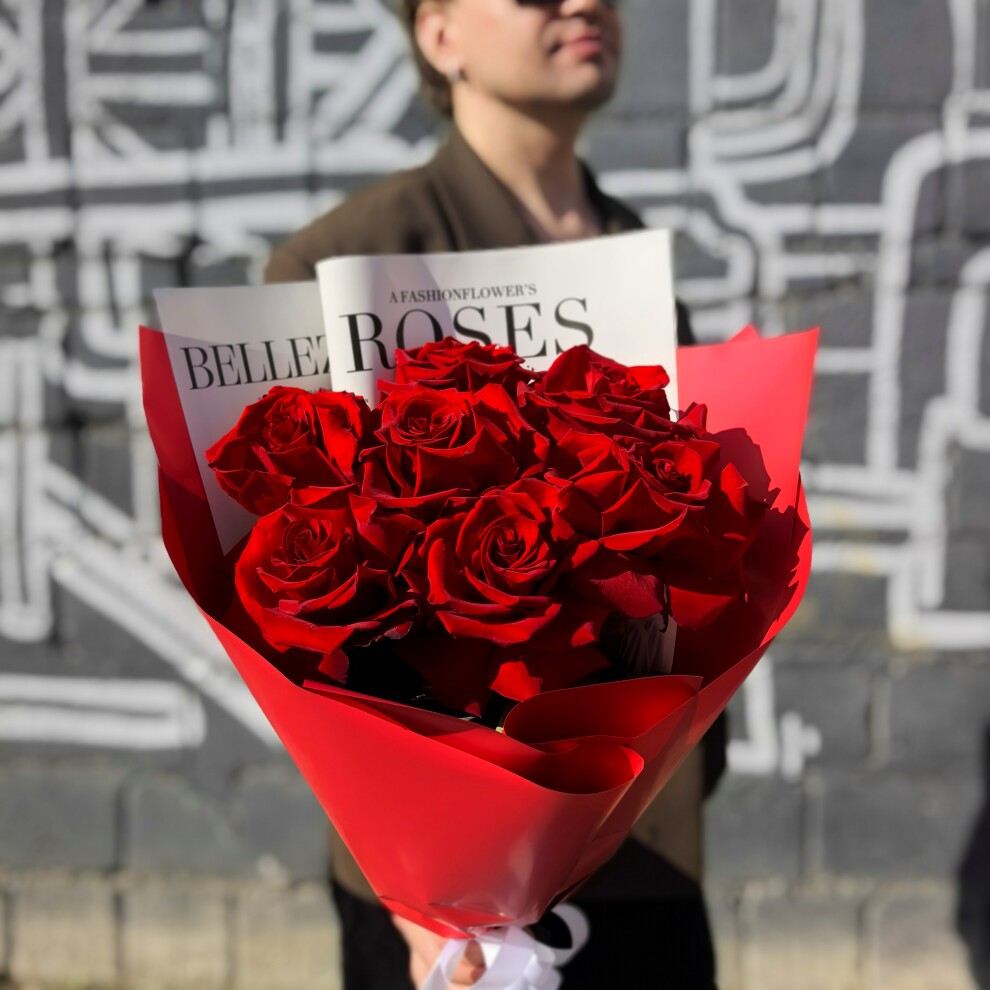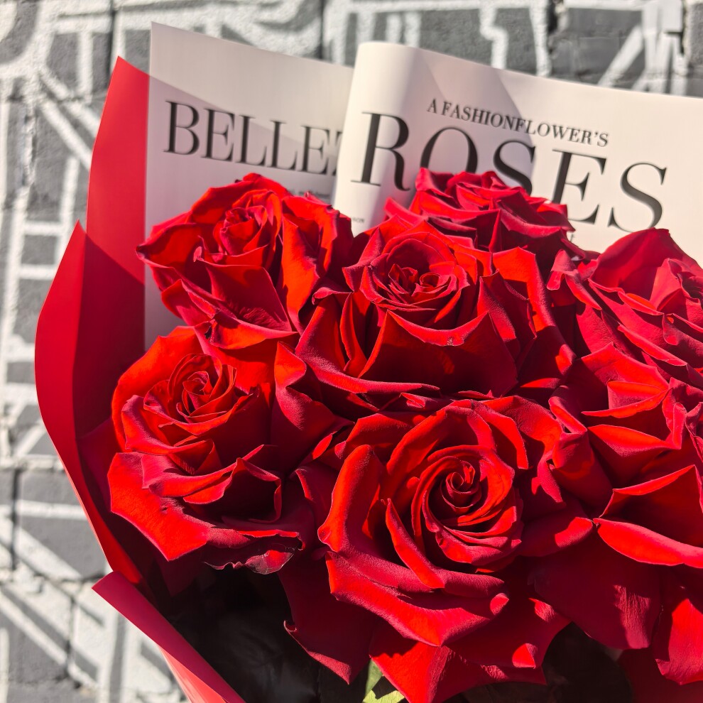 Этот букет из красных роз — воплощение страсти и любви. Яркие, насыщенные цветы словно пылают огнем, передавая всю силу чувств. Каждый бутон — это символ нежности и романтики, а их глубокий алый цвет говорит о искренности и преданности.