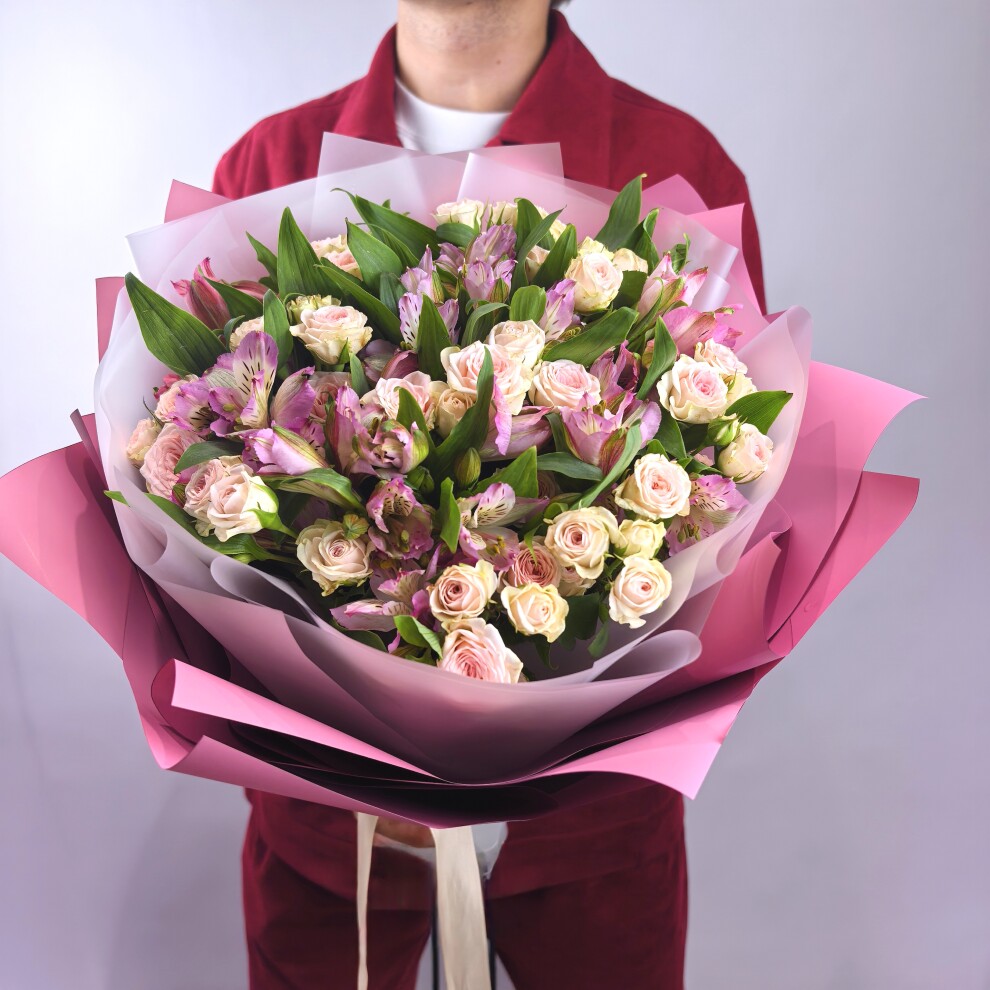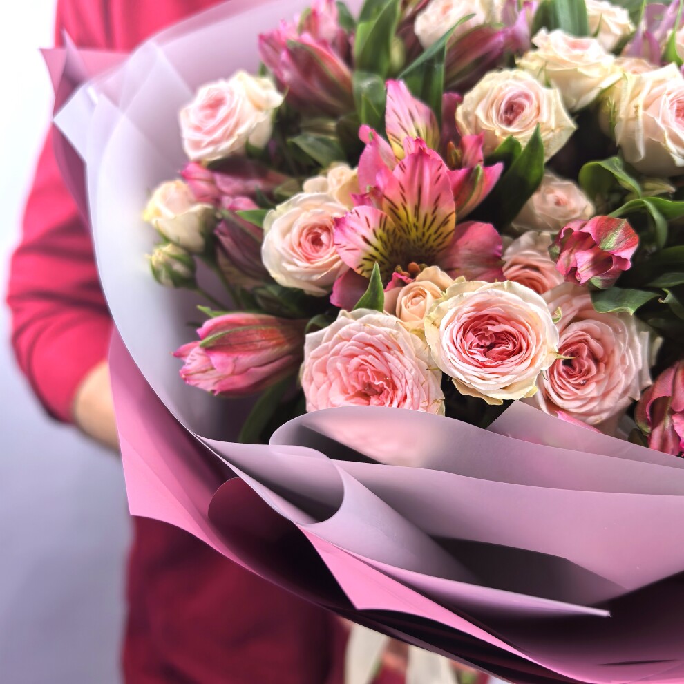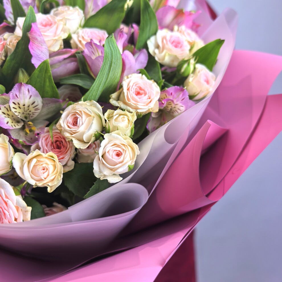 Роскошный букет с нежной кустовой Розой и Альстромерией