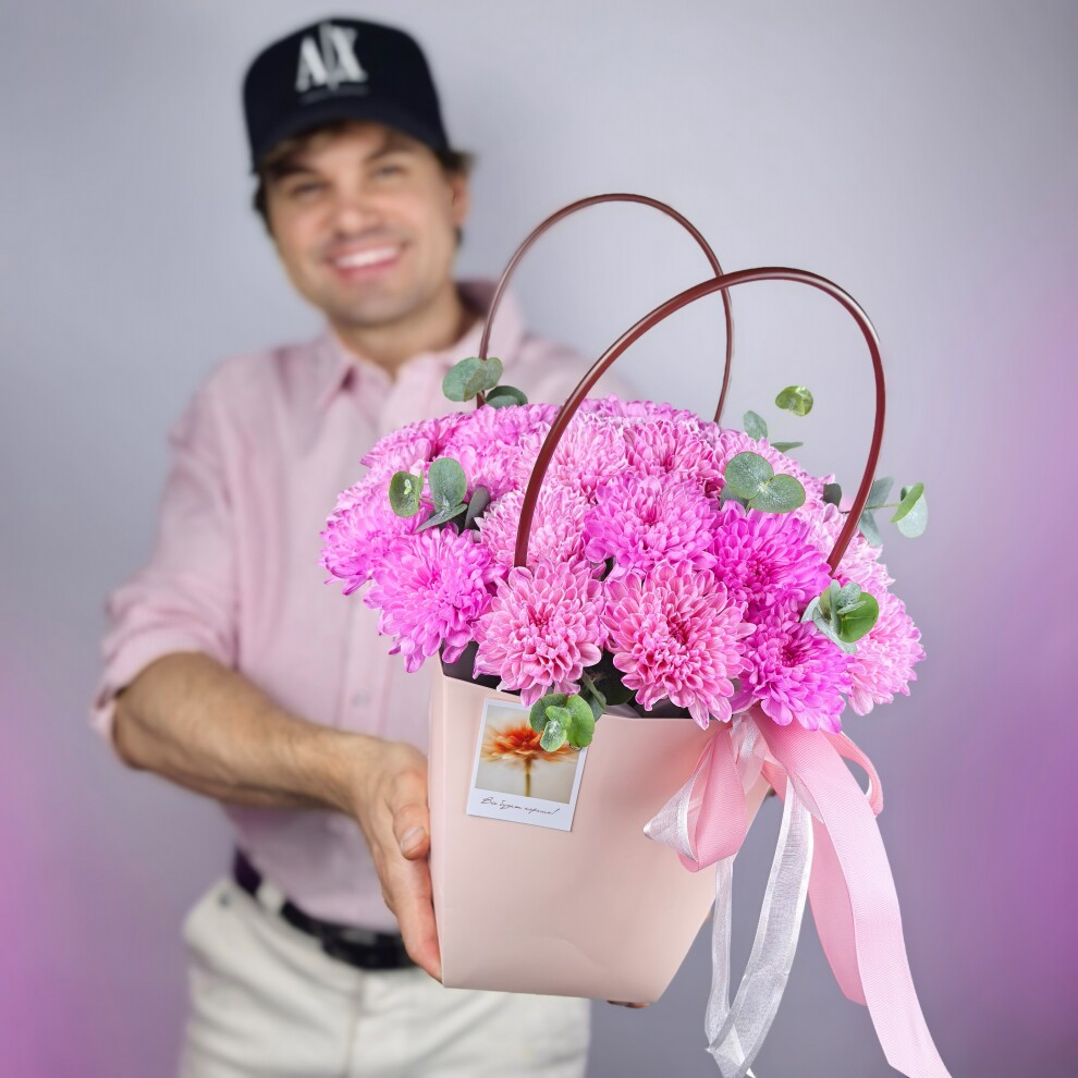 Эта сумочка с розовыми хризантемами — воплощение нежности и утончённости.