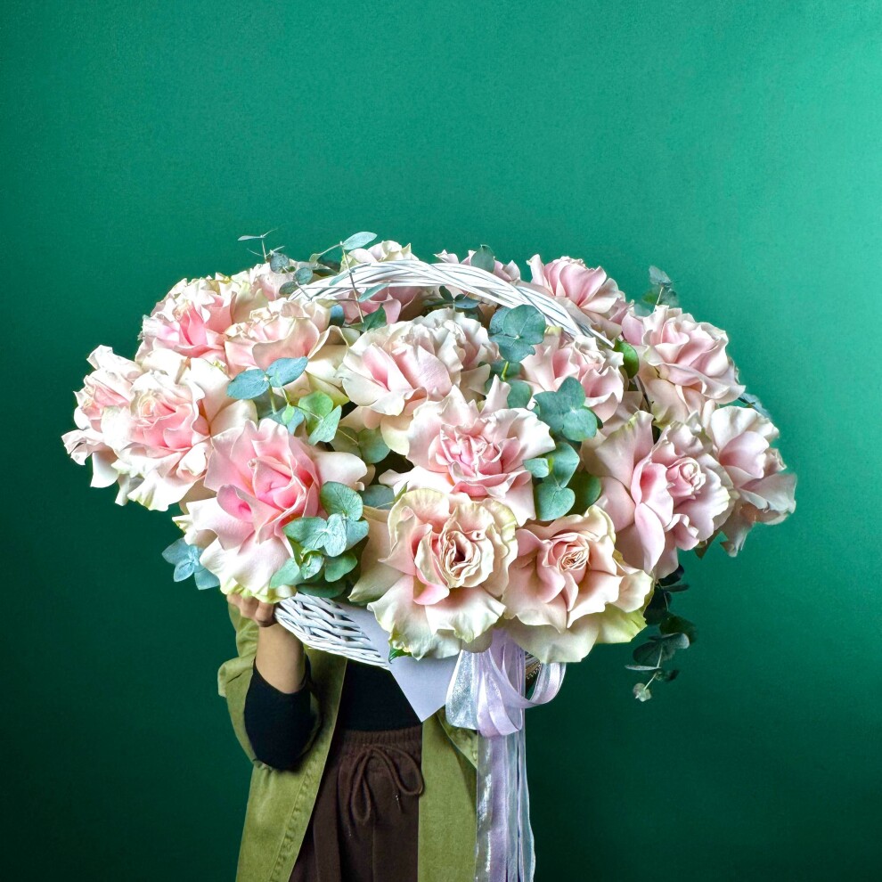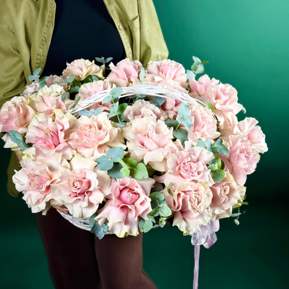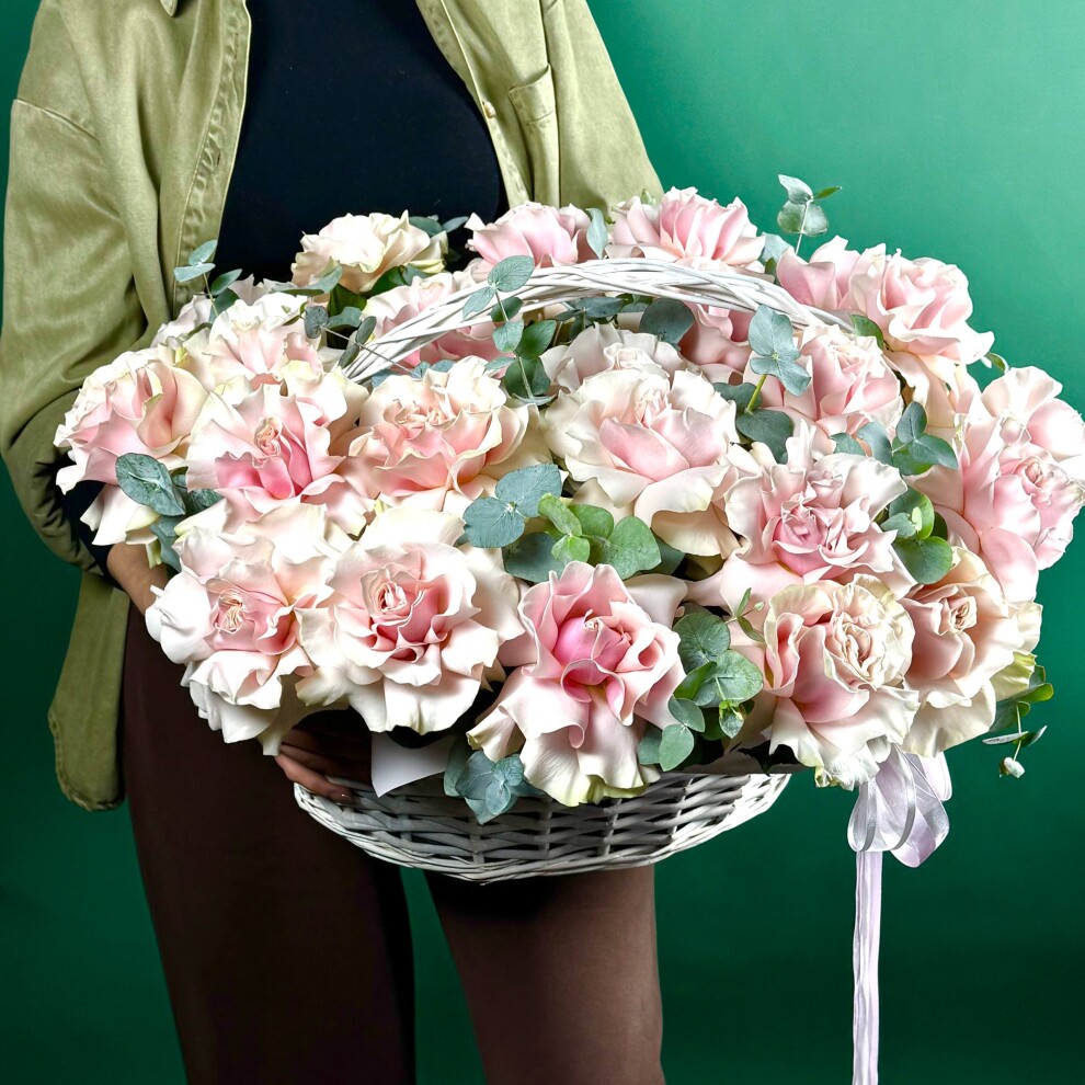 Шикарная корзина с нежными розовыми Французскими Розами