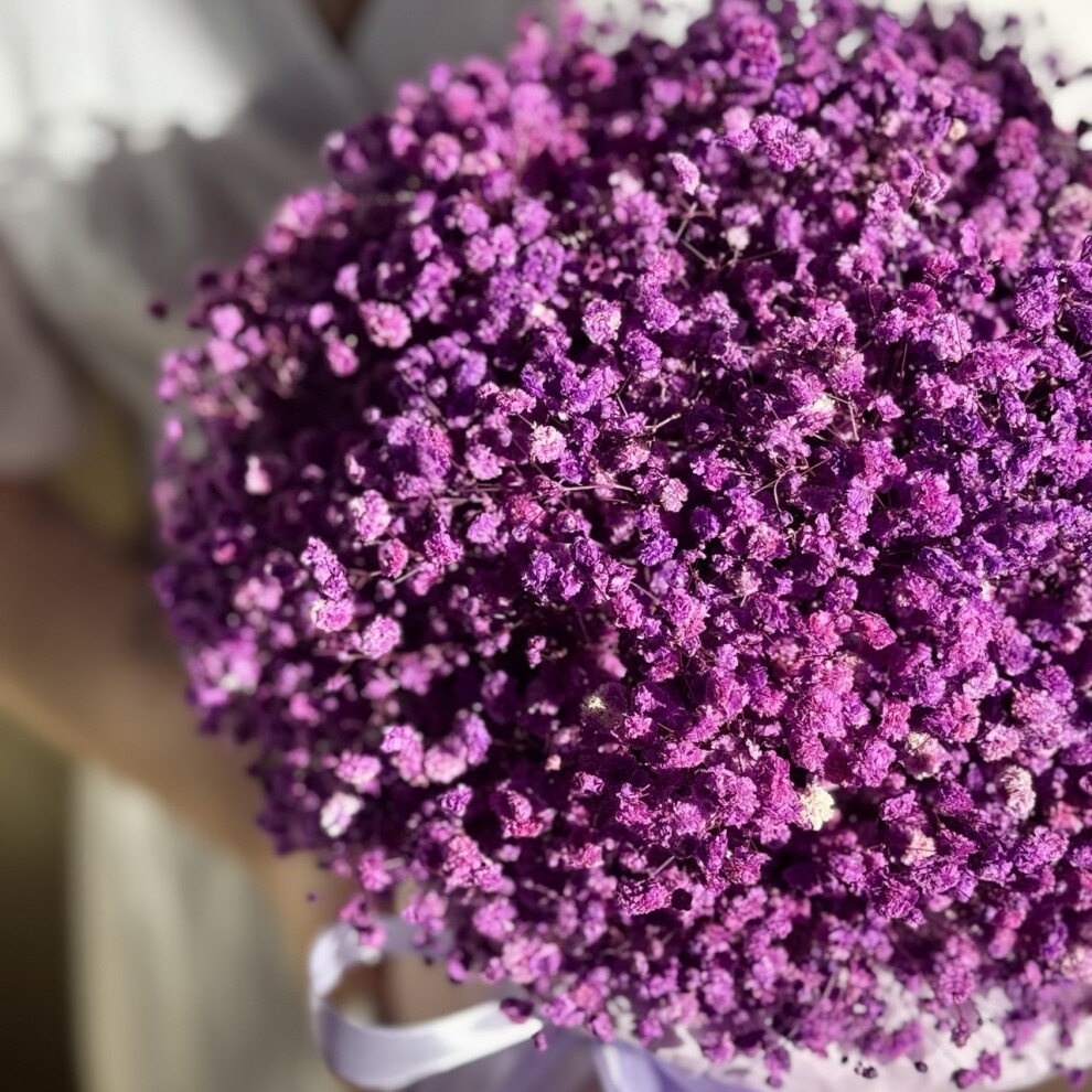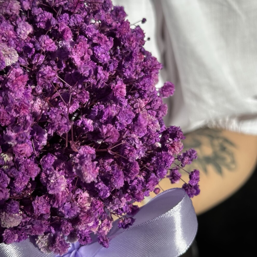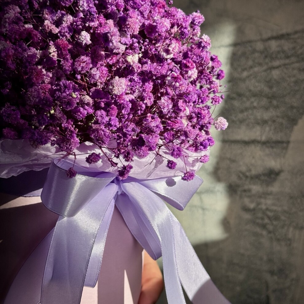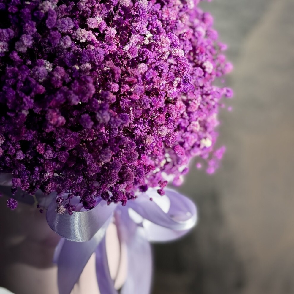 Шляпная коробка с фиолетовой стабилизированной Гипсофилой
