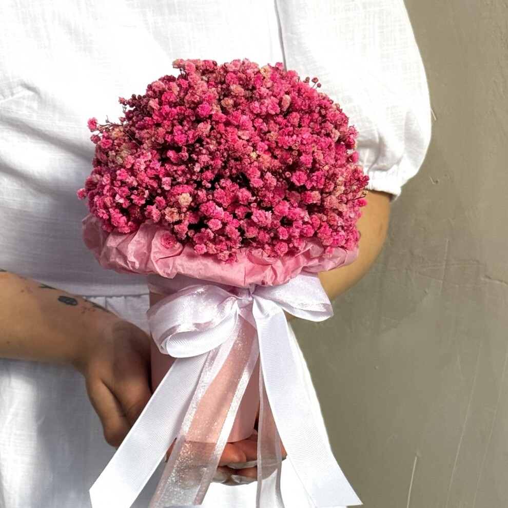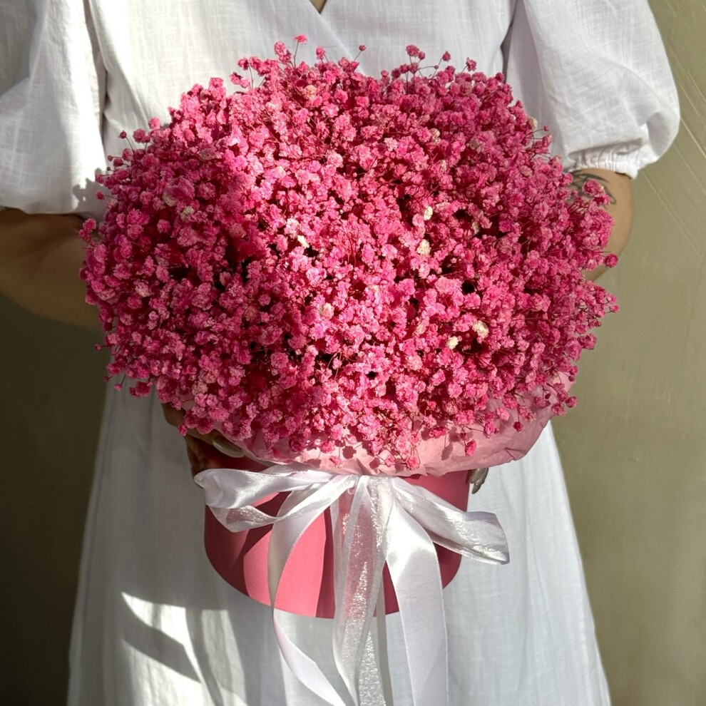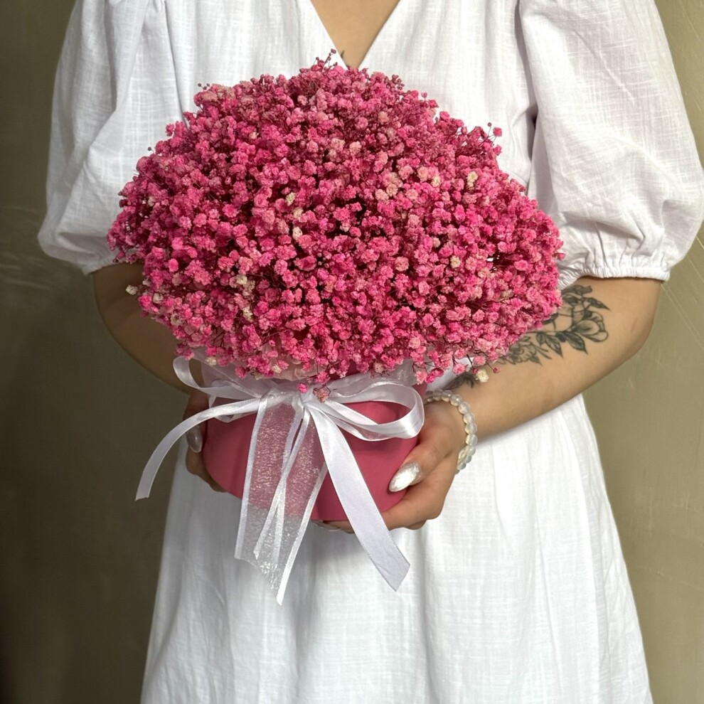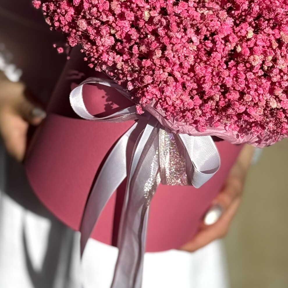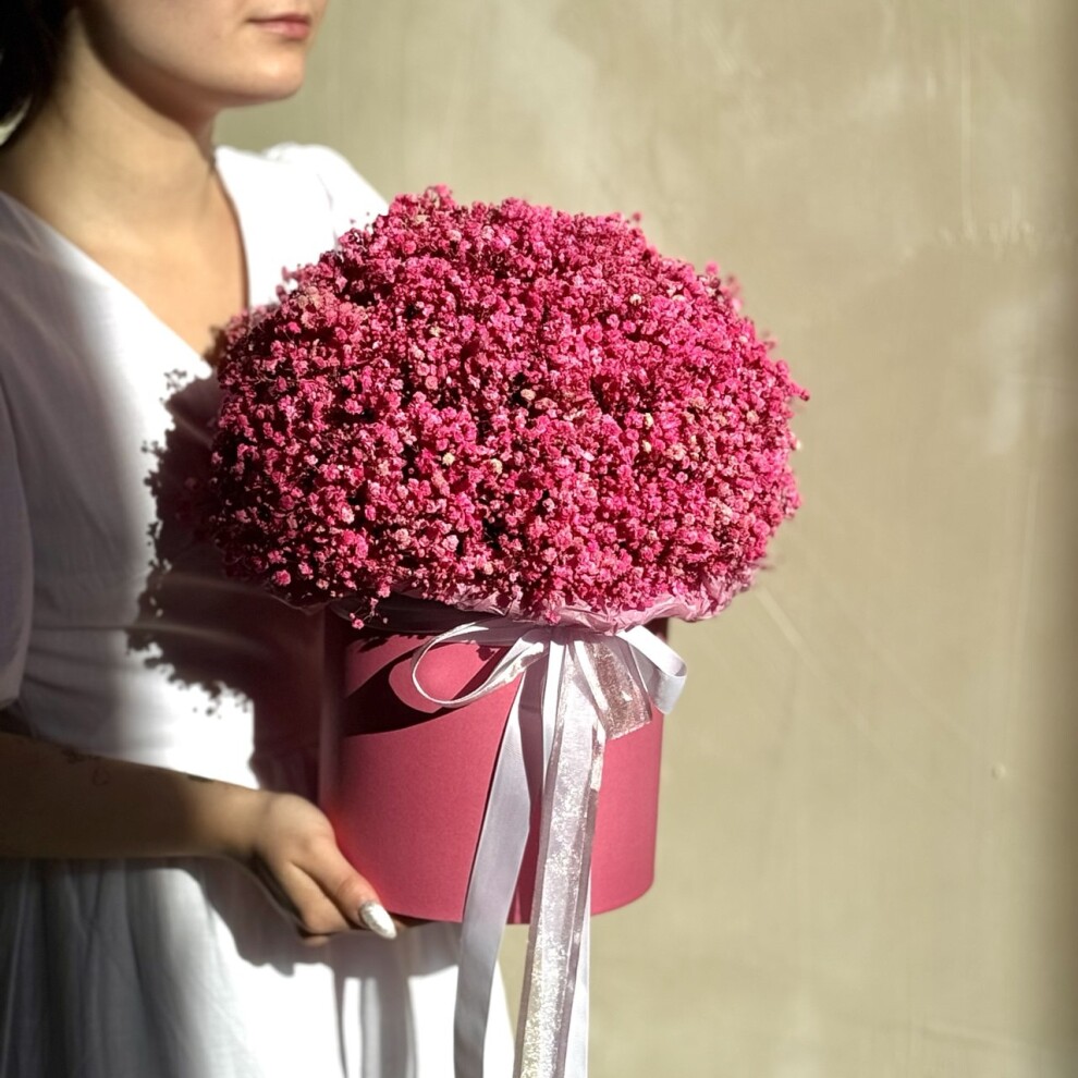 Шляпная коробка с яркой розовой стабилизированной Гипсофилой