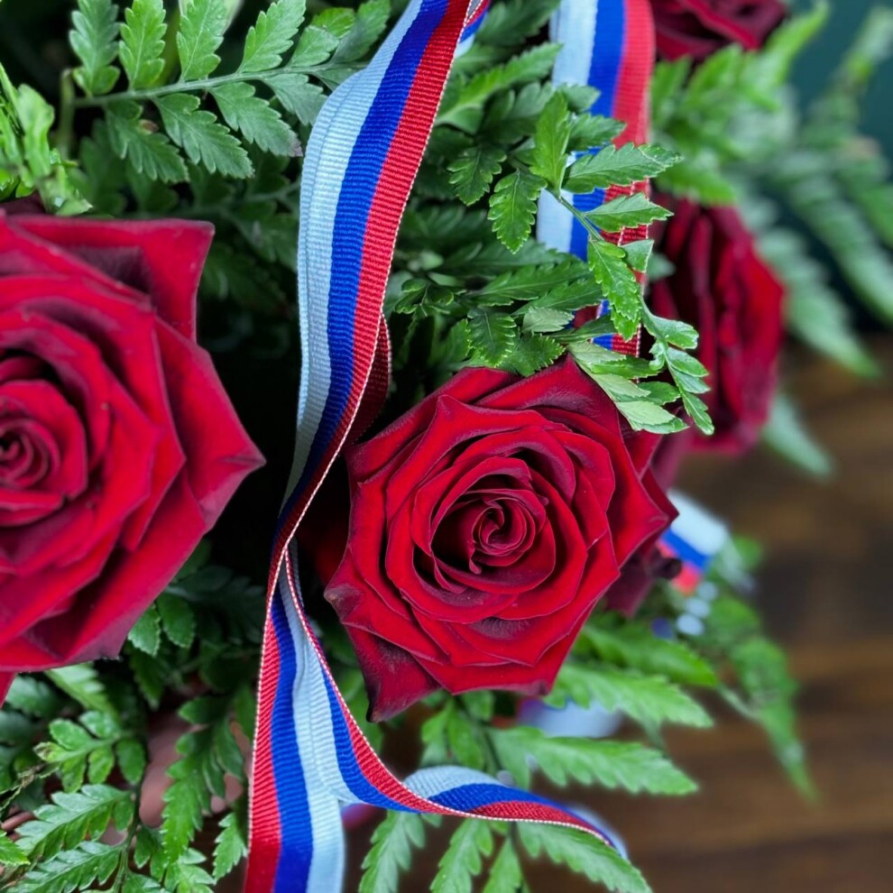 Лента триколор подчёркивает торжественность момента и символизирует память и уважение к ушедшему.